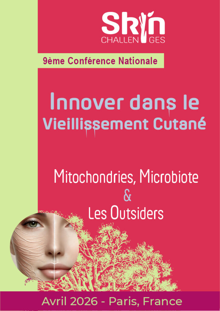 Nous avons le plaisir d’annoncer l’organisation de la 9ème conférence nationale « Innover dans le Vieillissement Cutané : Mitochondries, Microbiote et les Outsiders » en avril 2026 à Paris. Cette journée passionnante sera dédiée aux avancées scientifiques les plus récentes dans le domaine du vieillissement cutané.